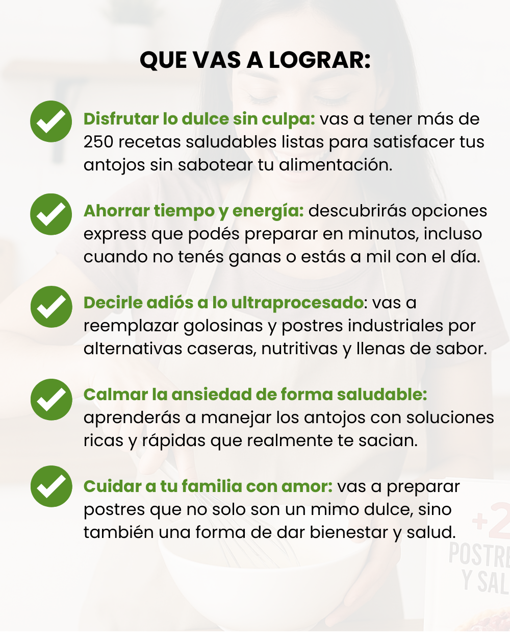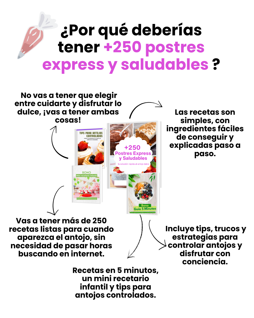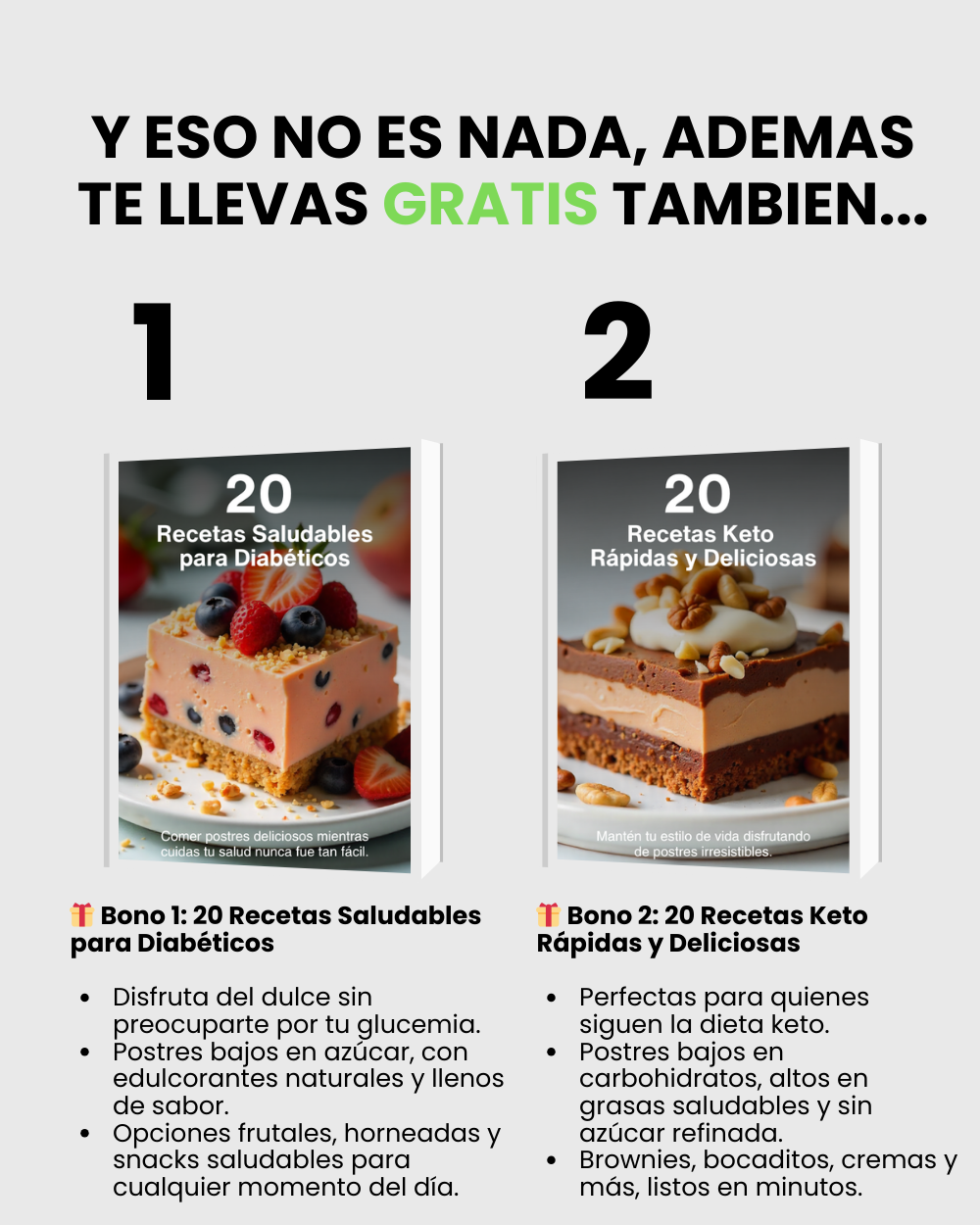 Además del recetario con más de 250 postres, te llevás 3 bonos exclusivos: