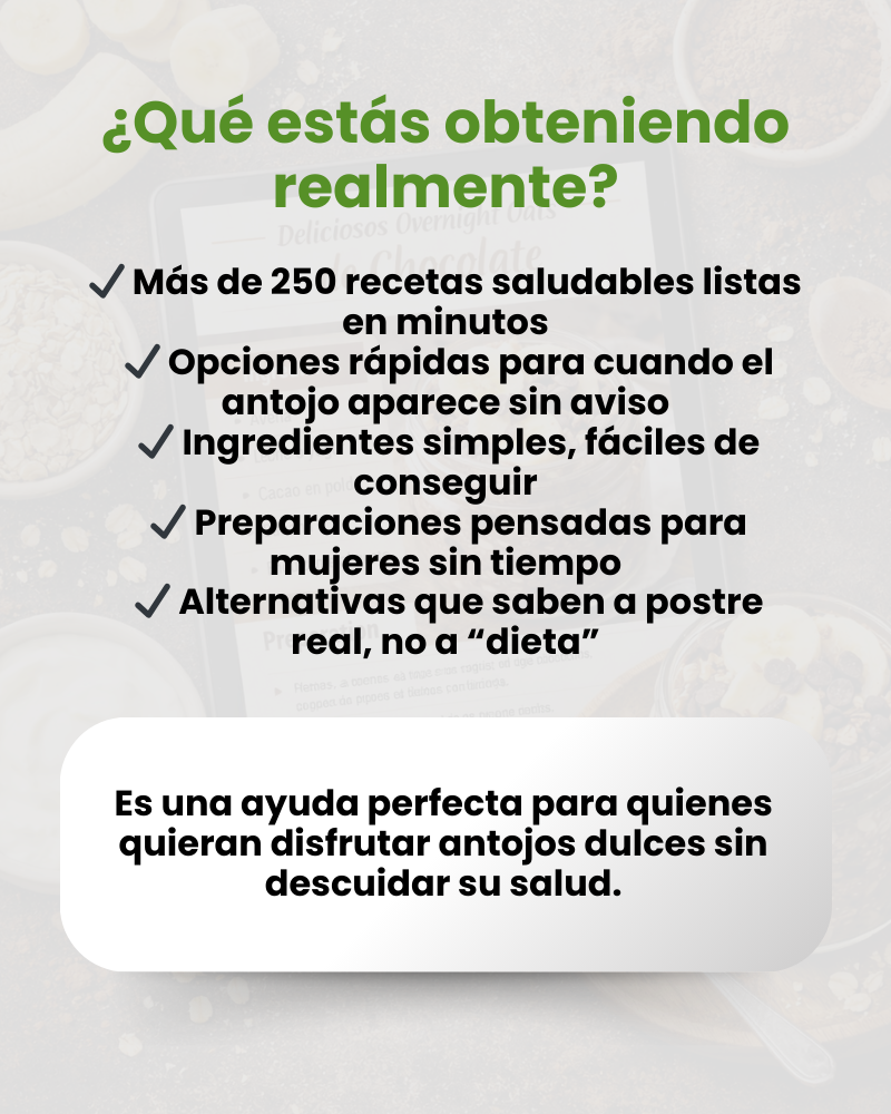 DESCUBRE RECETAS SIMPLES, RÁPIDAS Y CON INGREDIENTES QUE TE AYUDAN A CALMAR TUS ANTOJOS SIN SABOTEAR TU ALIMENTACIÓN.