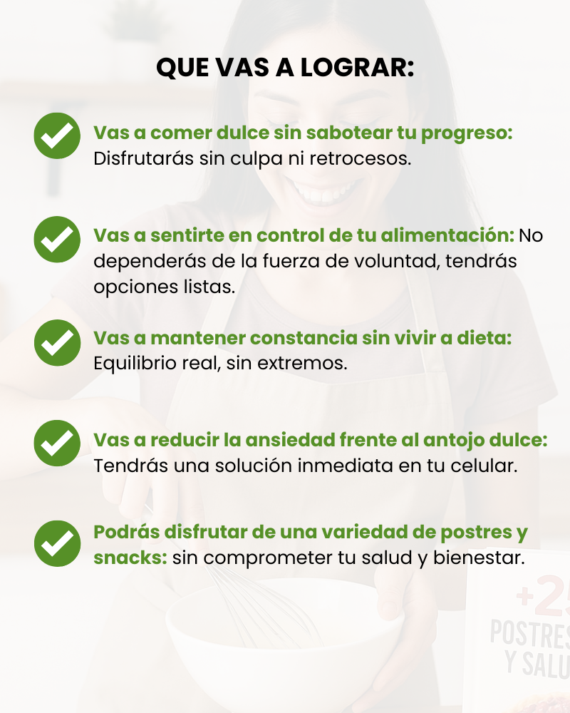 Sí. Son recetas pensadas para disfrutar lo dulce de manera saludable y equilibrada, sin sabotear tu alimentación.