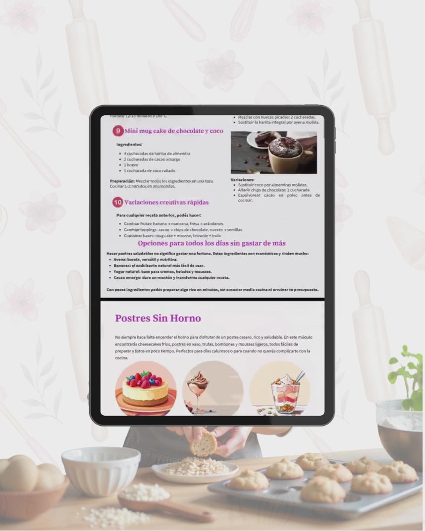 Sí. En el ebook hay un módulo completo con postres sin azúcar refinada y opciones bajas en carbohidratos.